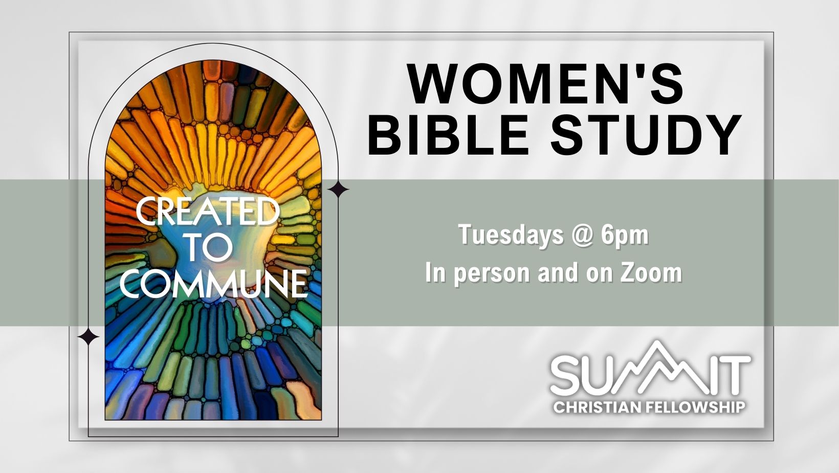 The Women's Bible Study is Tuesday nights at 6pm. Our current study is, "Created to Commune." Join us in person or on Zoom. Click the graphic to join on Zoom.